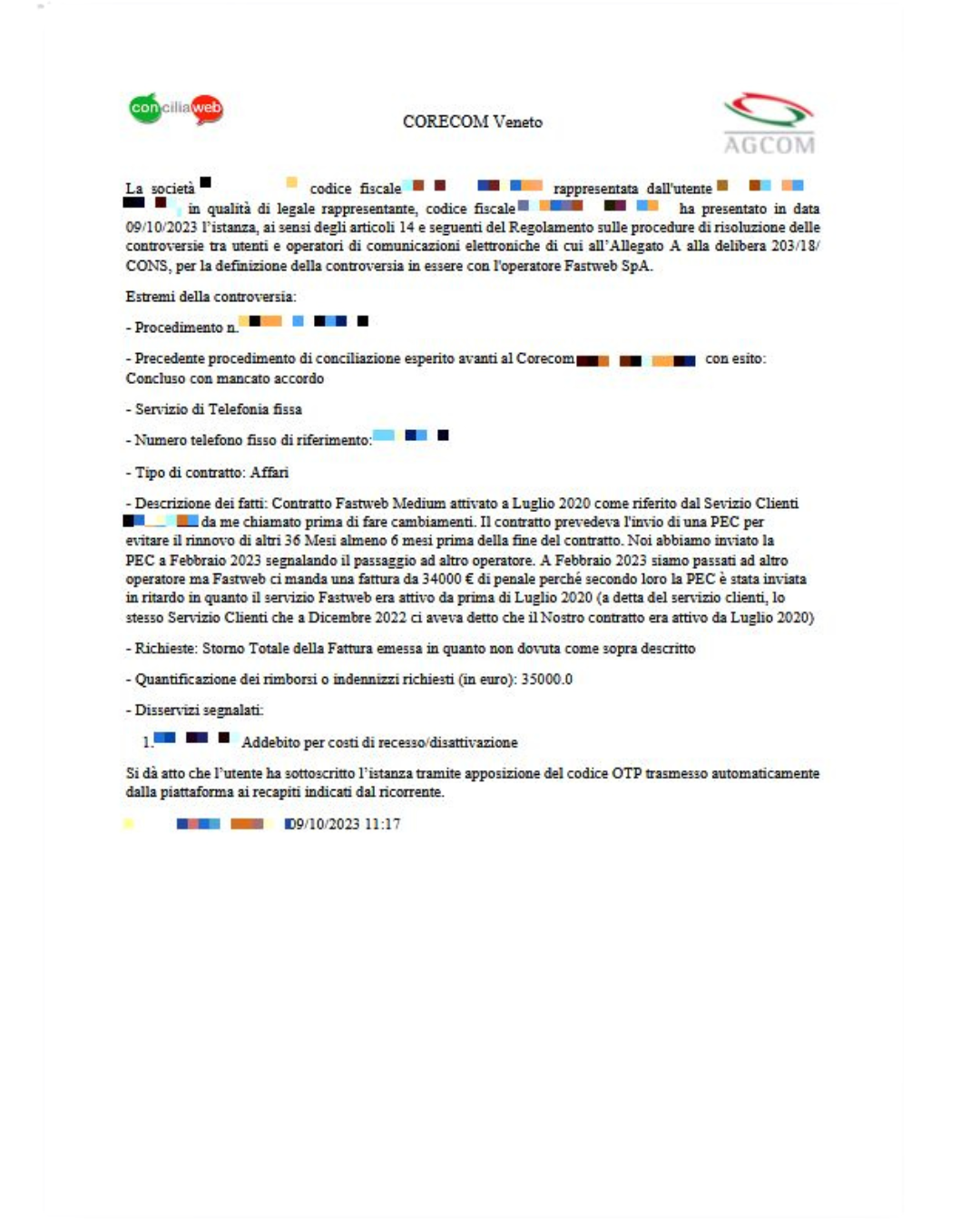 Supporto continuo tramite AGCOM e CORECOM Veneto.
